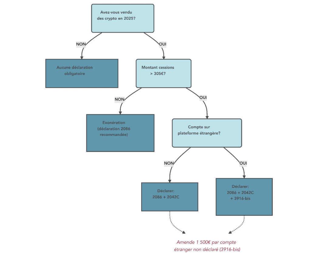 Ce seuil porte sur le total annuel des cessions en euros (ventes ou paiements en crypto), et non sur le montant des plus-values.